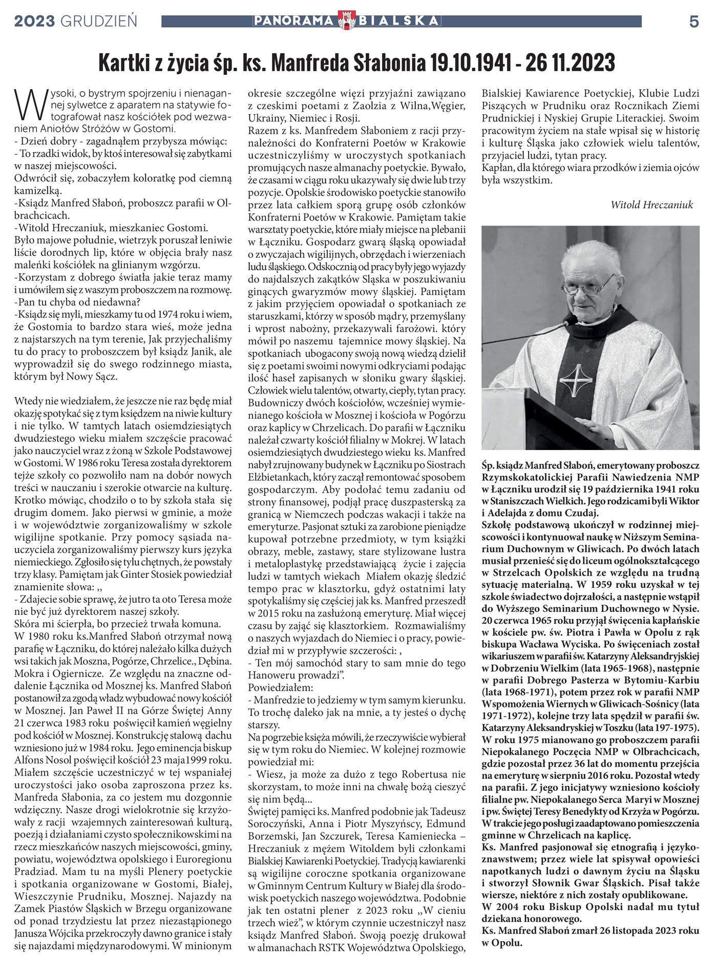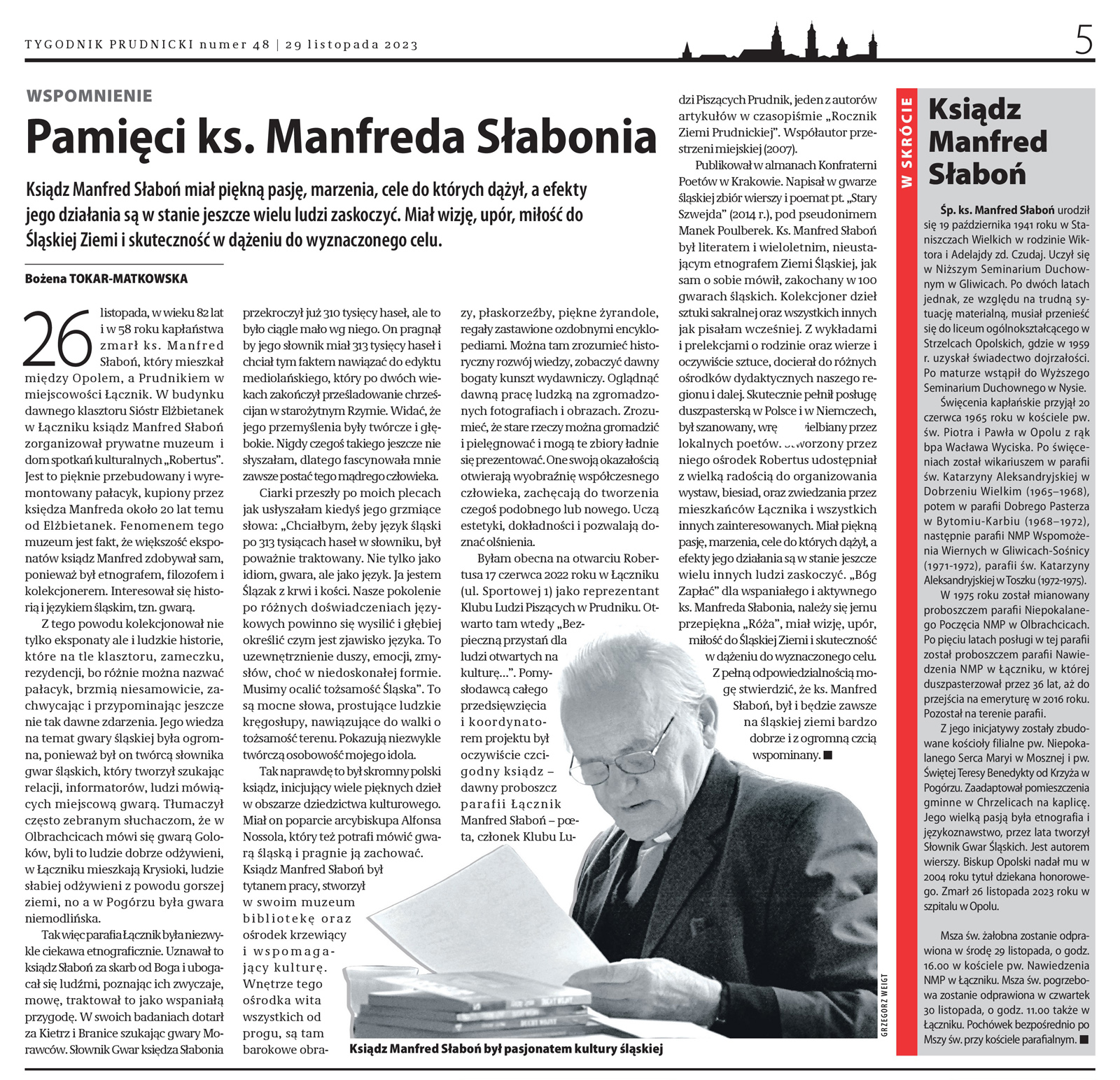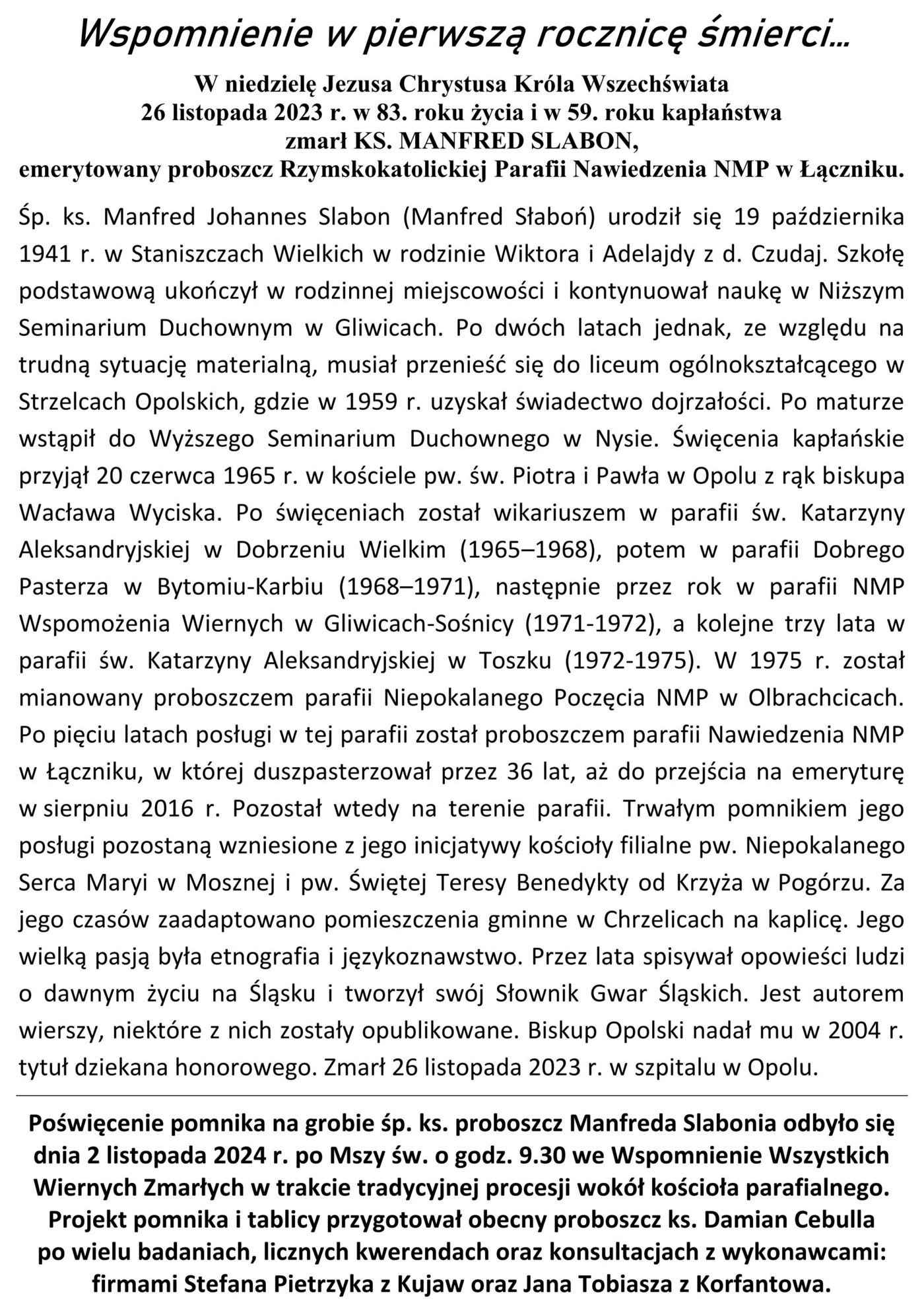 - dladziedzictwa.org, Pierwsza rocznica śmierci wybitnego księdza Manfreda Słabonia.